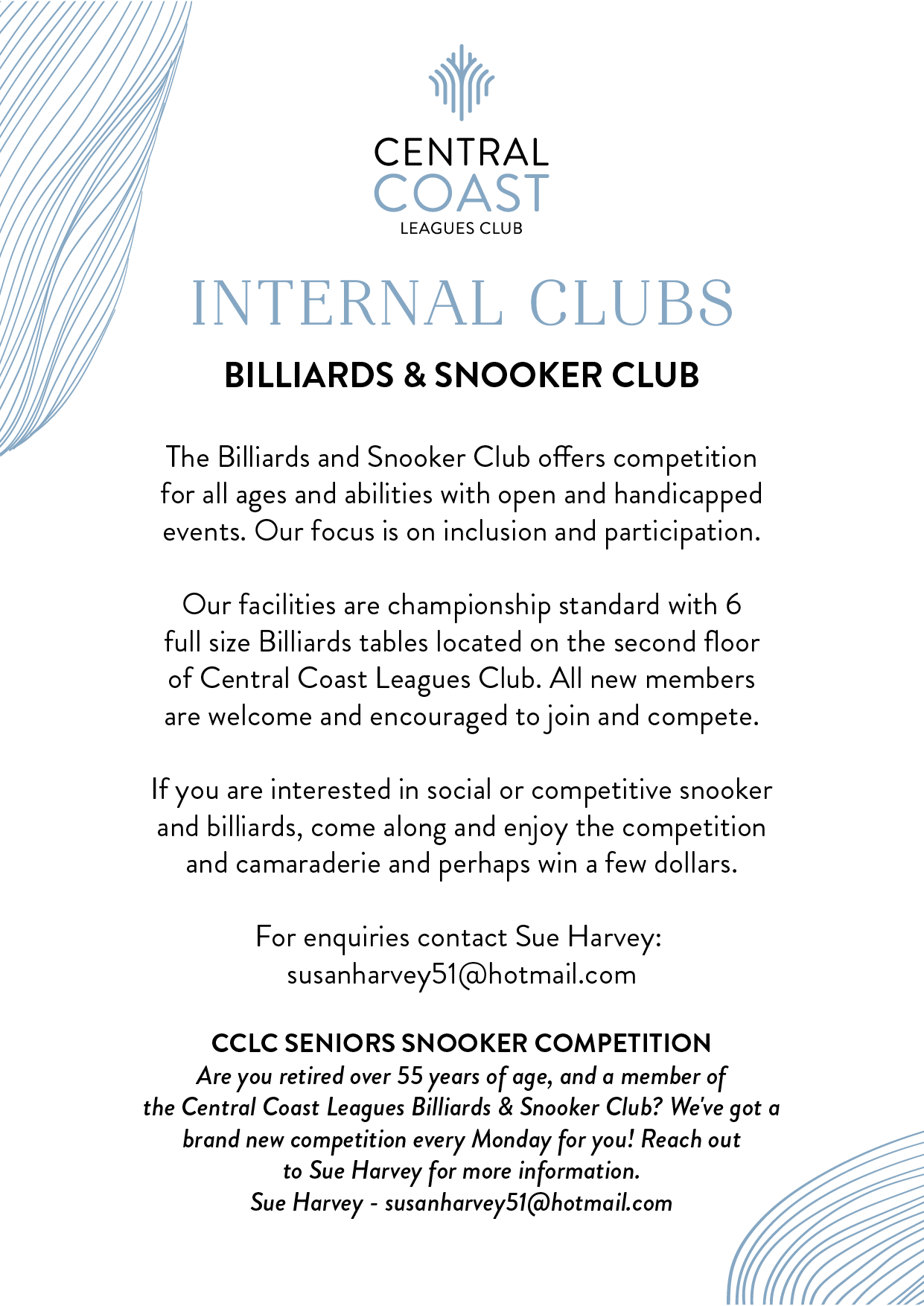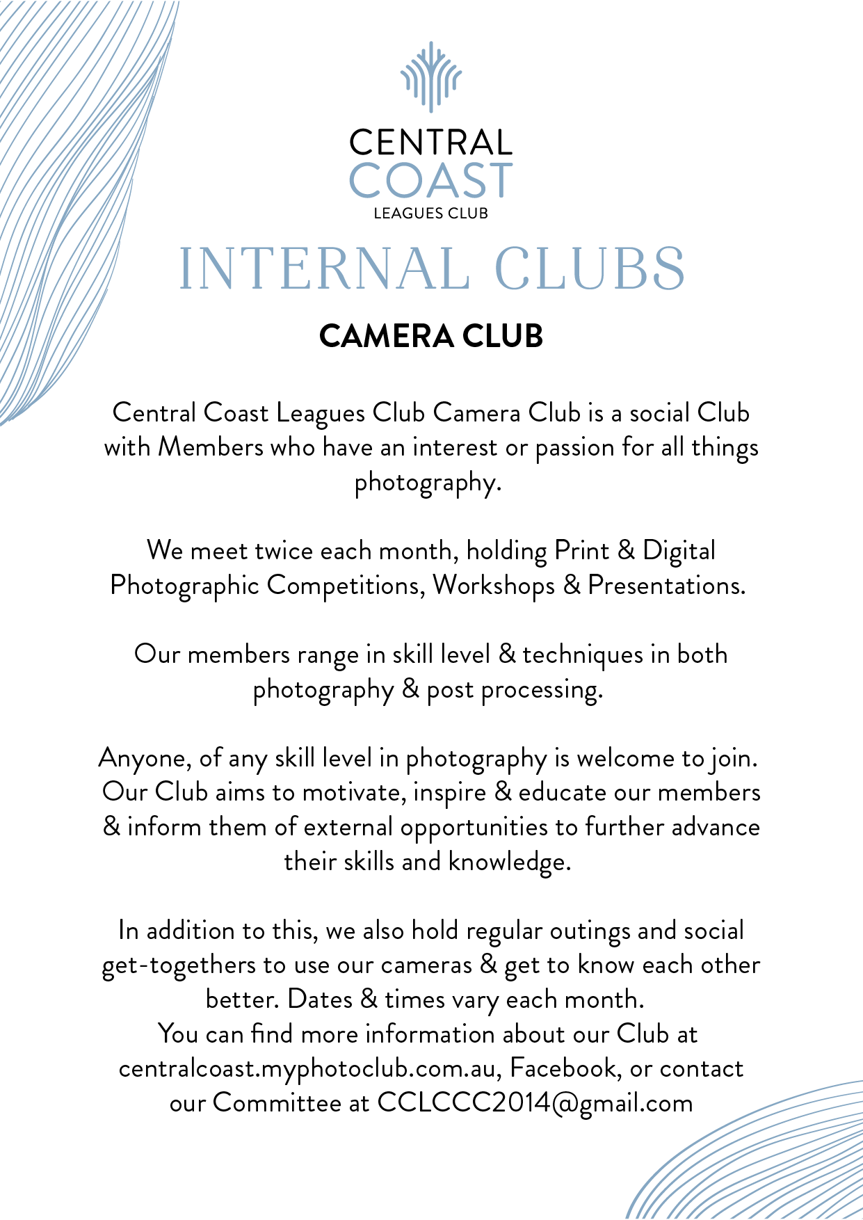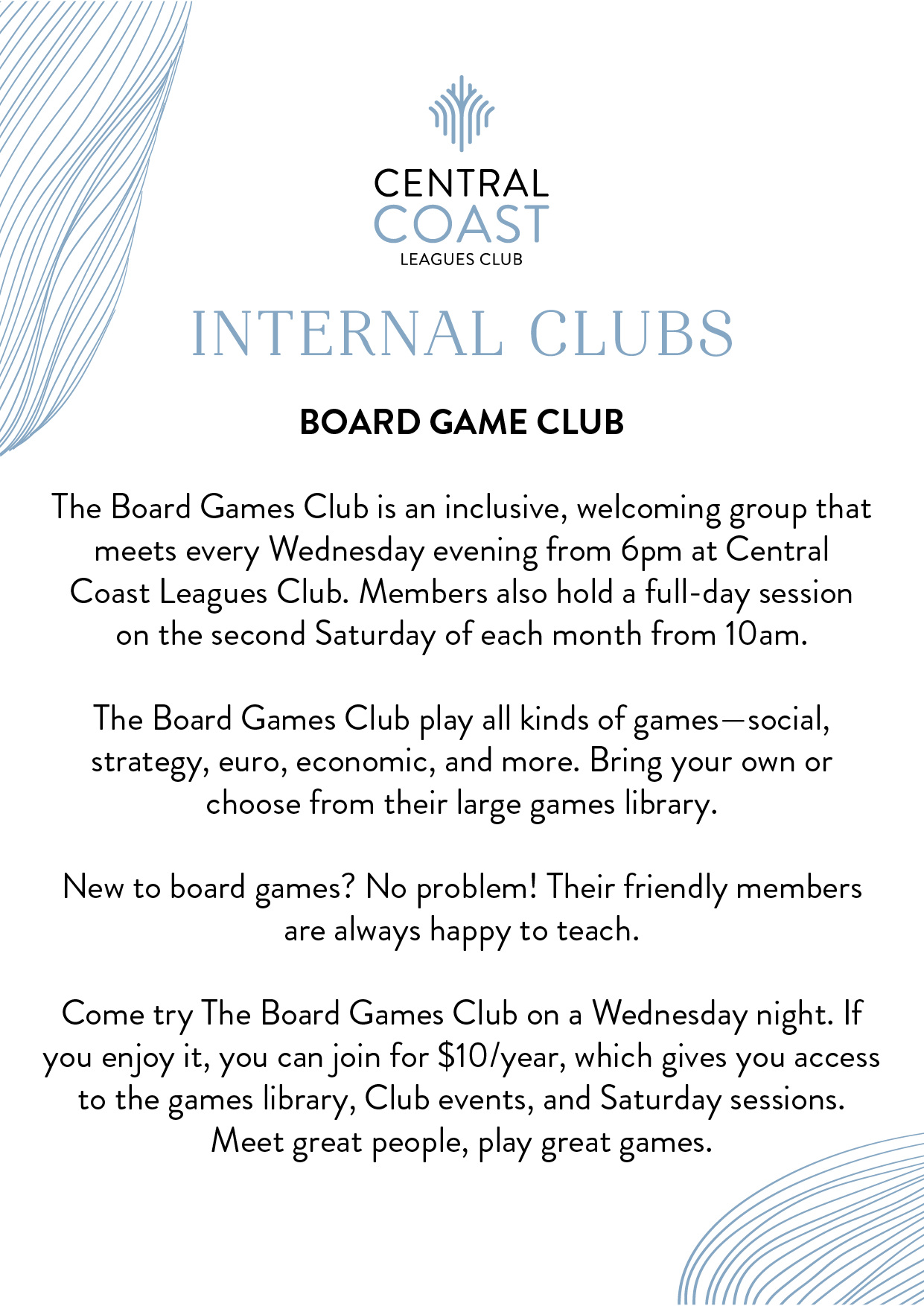 Looking for a new interest? Central Coast Leagues Club has a multitude of Internal Clubs that are open to all members of the public to participate in.