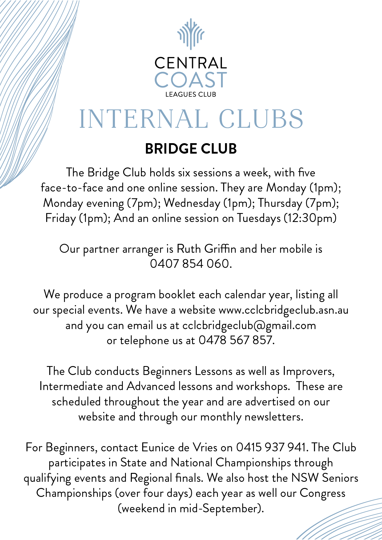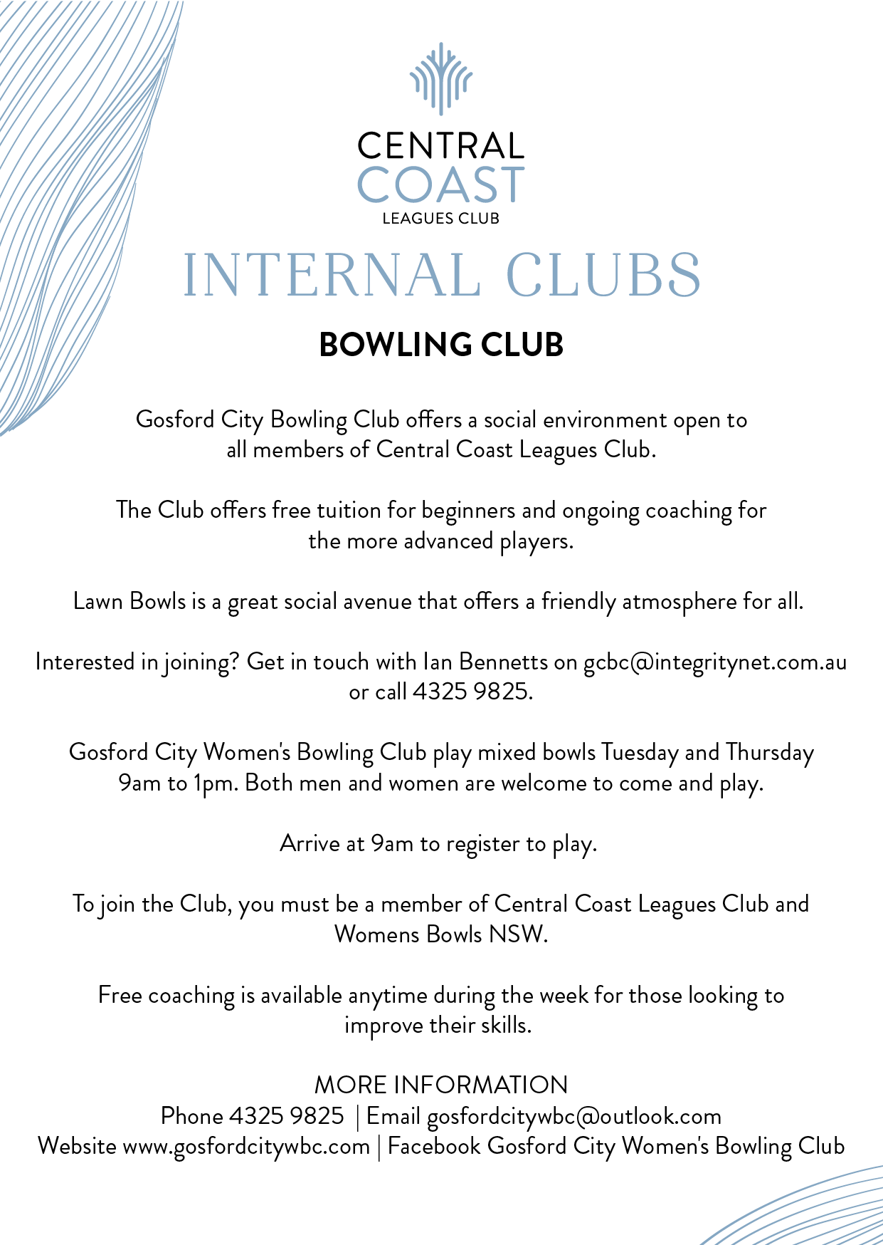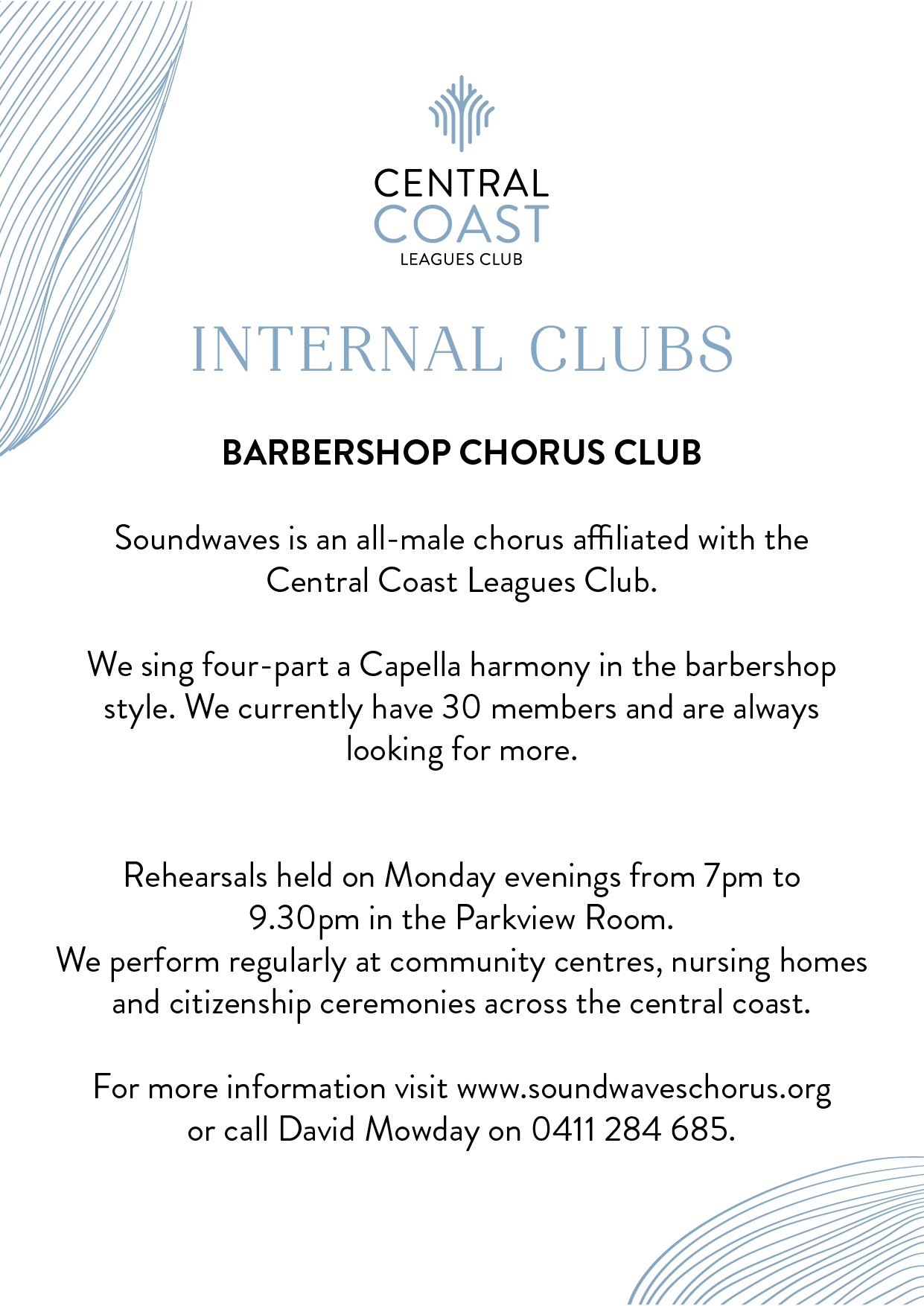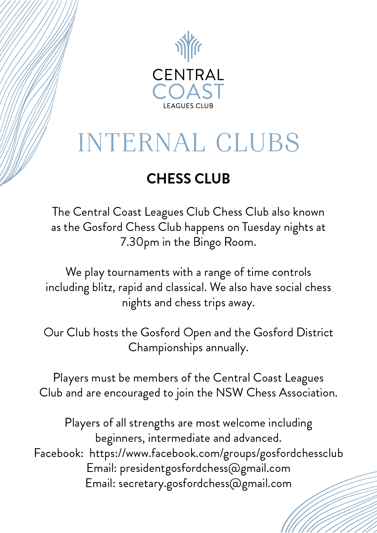 Looking for a new interest? Central Coast Leagues Club has a multitude of Internal Clubs that are open to all members of the public to participate in.